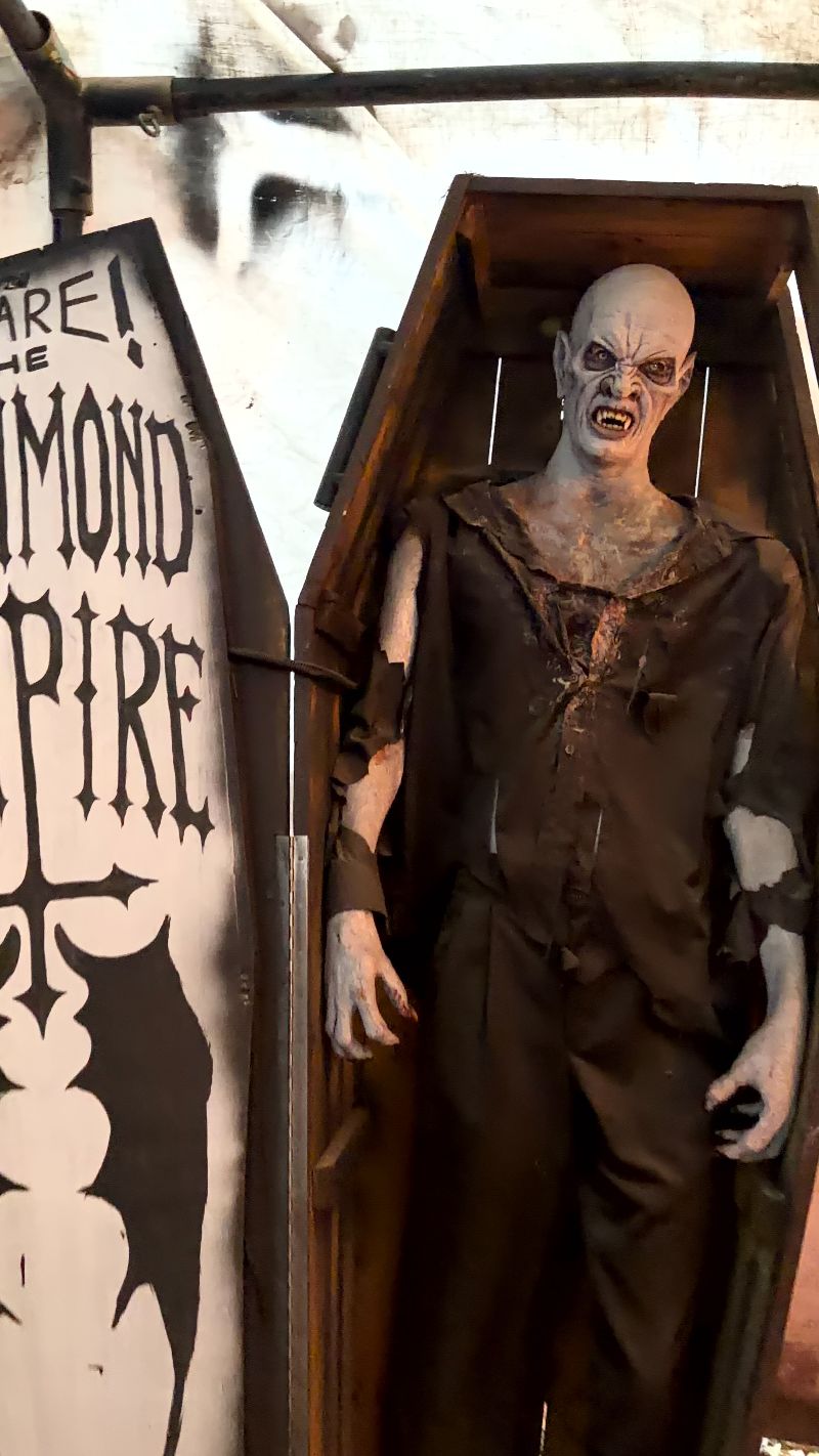 The immersion at Red Vein is absolutely top-notch. From the moment you arrive, the pre-haunt area sets the tone perfectly. The entrance looks like the front of a real castle and is paired with eerie sounds and music that immediately put you in the mood for what is coming.