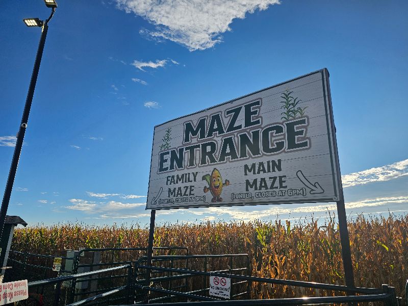 As noted above, the haunt starts off a little slow, with a dark and disquieting walk through the tall stalks, but the few actors that were in that area did a good job of keeping us grounded. Upon arrival at the haunt proper, however, the cast, scenery and special effects keep guests locked in. The calmer areas provide enough of a glimpse of what’s coming around the next bend without giving away too much, keeping the intrigue high, with a good use of blinds and other pathway designs. The end of the haunt, in contrast, seemed to arrive before we realized it. Upon leaving the last area of the haunt and entering the dark, calm corn once more, we kept waiting for something to pick back up, but, despite one good final jumpscare from the corn, we were left unassailed and confused about what was considered the finale. That calm walk back to the farm park definitely broke the immersion, which was disappointing given the energy and excitement of the rest of the haunt. Of course, upon exiting the haunt, guests are put back near the entrance of the farm park, which has a nearby gift shop, snack stand, and roving light-up and glow stuff vendors. Those with more to accomplish before calling it a night are able to re-enter the farm park and continue taking advantage of its offerings, most of which come with the price of admission, until it closes for the night.