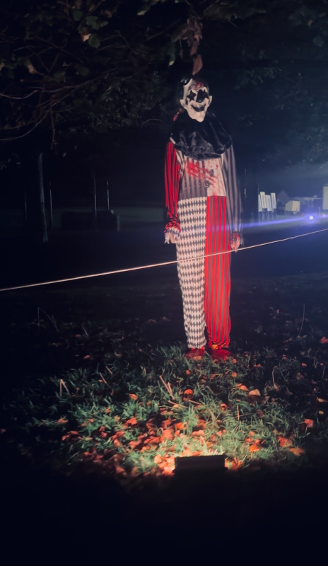 Other masks depicted skeletal beings with maggots emerging from hollow eye sockets, creating a very disturbing image. The clowns, with their pointed noses and intricate detailing, wore masks that looked more like crafted prosthetics than simple face coverings. At the opening, a doll-faced character made an immediate impression with a mask whose eyes blinked and moved all on their own, adding a bizarre lifelike quality. Touches like this raised the bar on the entire experience and made the trail visually gripping throughout.