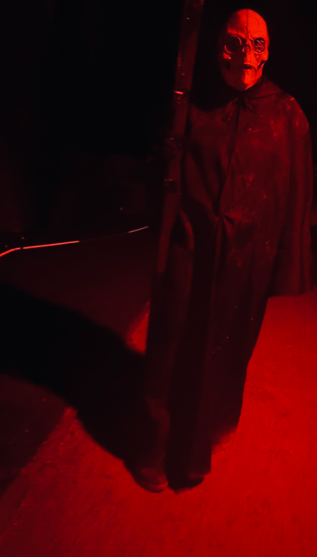 Many of the actors adopted a completely quiet, stalking approach, gliding through the darkness and reappearing in unexpected locations. Others whispered cryptic phrases or broke the silence with unexpected, unnerving outbursts that kept us always on edge. One standout performance came from a clown near the start, whose convulsive, puppet-like movements gave the uncanny feeling of him being controlled by invisible strings. It was a disturbingly mesmerising way to begin!
