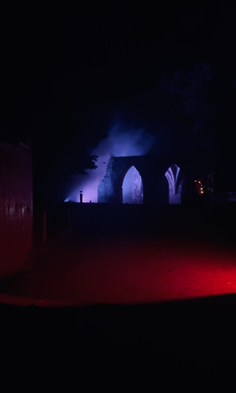 The special effects focused on lighting and sound, both of which were used to great results. One memorable sequence featured LED light strips synced to the sound of distant shrieks, creating an eerie and disorientating light show that matched the terrifying air. We cannot overstate how magnificently the lighting played off the location and scenery, with vast windows flashing lurid red on the exterior of the castle beckoning us forward in an almost filmic fashion.