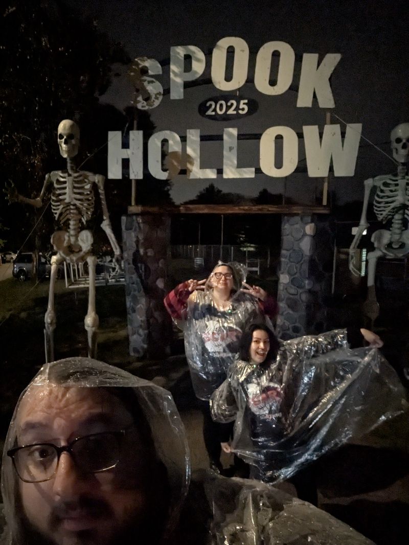 As mentioned, Spook Hollow is purely a volunteer attraction. It is located on the Independence Park Trail and takes over the neighborhood for a few weeks in October. There are plenty of nearby parking spaces, including the lot across the park. When we arrived, we found plenty of volunteer officers, paramedics, and firefighters hanging around in case any issues needed to be addressed. Staff are available to help with any questions. Security is plenty throughout to assure the safety of actors as well as guests. During the night we visited, the weather was mostly rainy. Spook Hollow passed out ponchos for guests to help keep them from the elements.