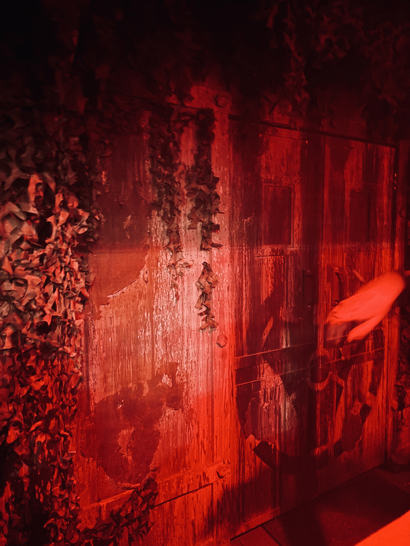 As mentioned before regarding the cast, the physical scares here are intense. The cast attack you from all angles, reaching and trapping you from ceilings, running full pelt at you down corridors, or pinning you to walls to feed on you. There are some simpler jump scares, but mostly it’s a constant barrage of full-on assaults, with sinister actors suddenly getting close to us with sustained interactions. The actors often used scares to monitor batching issues as well, sometimes pulling us back and isolating us in non-obvious ways which made it feel like part of the performance. In one of these moments the door in the asylum was shut and locked in front of us, meaning we had nowhere to escape as an inmate attacked us from above. We were only able to escape minutes later when the door was finally unlocked and the attacker let us go free.