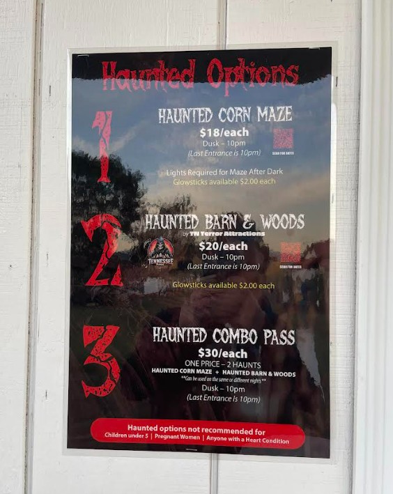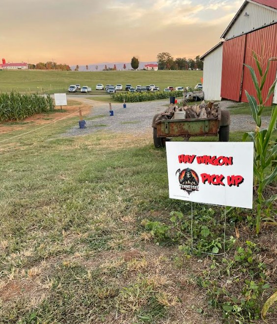 The parking lot at Maple Lane Farms/TN Terror Haunted Attraction is all gravel and has some lighting. Once you get parked, follow the signs to the ticket booth and purchase your tickets. Be sure to purchase your tickets for the correct haunt because on select nights, Maple Lane Farms does its own separate haunt. After getting your tickets, head over to where the hayride picks you up, and get in line for “TN Terror Haunted Attraction”. The hayride runs approximately every hour and will take you to the haunt location. Once there, it’s easy to see the queue.