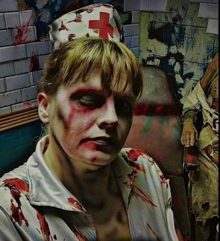 The overall appearance of the actors, including masks and makeup, varied throughout the haunt. There were a few masked actors, with the majority wearing makeup. The masks fit the theme of the costumes, but would benefit from more distressing to fit the scenes overall. Costumes could be more believable with additional tattering and gory details. Anyone in the business of skinning victims would not be very clean! We did see some jeans, which could work depending on the scene, if splattered in blood or grime for maximum impact. The actors in makeup had a much better effect, with the whimsical clowns, bloody nurse, and ghastly maid at the top of the list. The actor’s costumes were strategically matched within the scenes they haunted, with no random characters to be found.