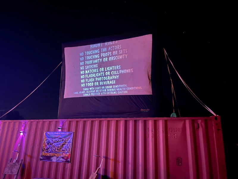 Navigating to Terror at Potomac Manor can be a little tricky, with directions being difficult to find. We were able to locate them with GPS, but could have missed them since there was no signage to let us know we were in the right place. Parking was a bit confusing with a graveled lot across the street and grass parking on the side of the haunt. Luckily, there was a parking attendant who was able to point us to the grassy area. We were thankful we got there early. My clumsy self would have tripped in the parking lot without much light.