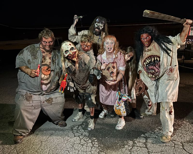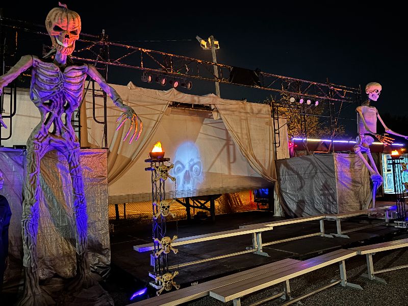 With great effort, I managed to escape the horrors of the Bracken-Hart Institute- and sans any Fleshlumpkins, I might add- in approximately 24 and 1/2 minutes. A General Admission ticket to the Horrorplex is currently $26.00, so their MPD (Minutes Per Dollar) rating came out to 0.94; just a hair shy of the full minute we usually look for in terms of value. To put it bluntly: this was an awesome show. Immersive, scary, funny – it checked all the boxes. No haunt is 100% perfect, but I was seriously impressed by how much American Horrorplex pulled off this season. And in addition to the haunt, there were quite a few other things included with the ticket to enjoy: music, roaming characters, photo ops, and live encounters with animals in the midway. I didn’t get to see these things the night I went, but on select nights, live shows are also offered at no charge.