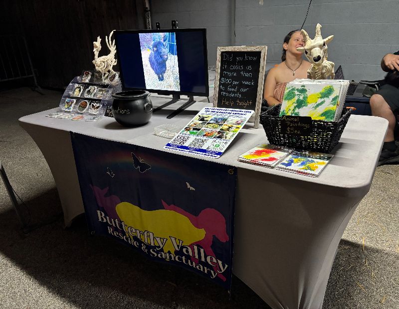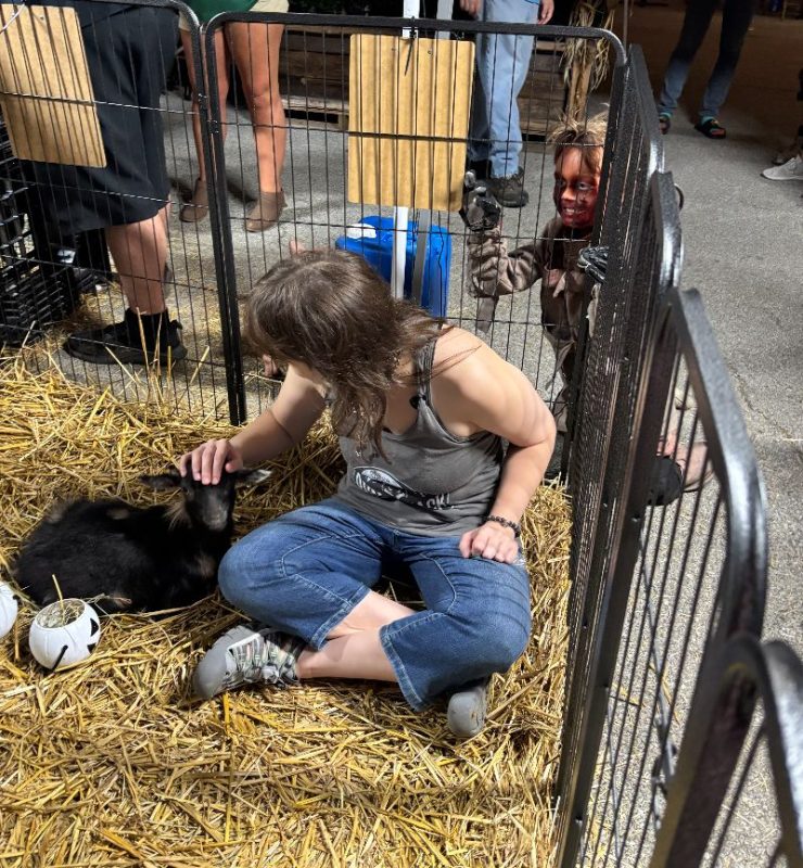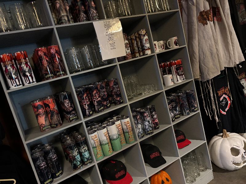 Once the show was over, I stumbled breathlessly out of the exit – and right into the gift shop, where the employees at the counter up ahead had my souvenir photo ready and waiting! In addition to loads of different Horrorplex-themed merch items for sale, a lot of cute Halloween stuff was available, too. Leaving the gift shop took me out into their midway, where patrons could buy food, take photos, shop with vendors, interact with roaming characters, or visit with friendly animals (courtesy of Butterfly Valley Rescue).