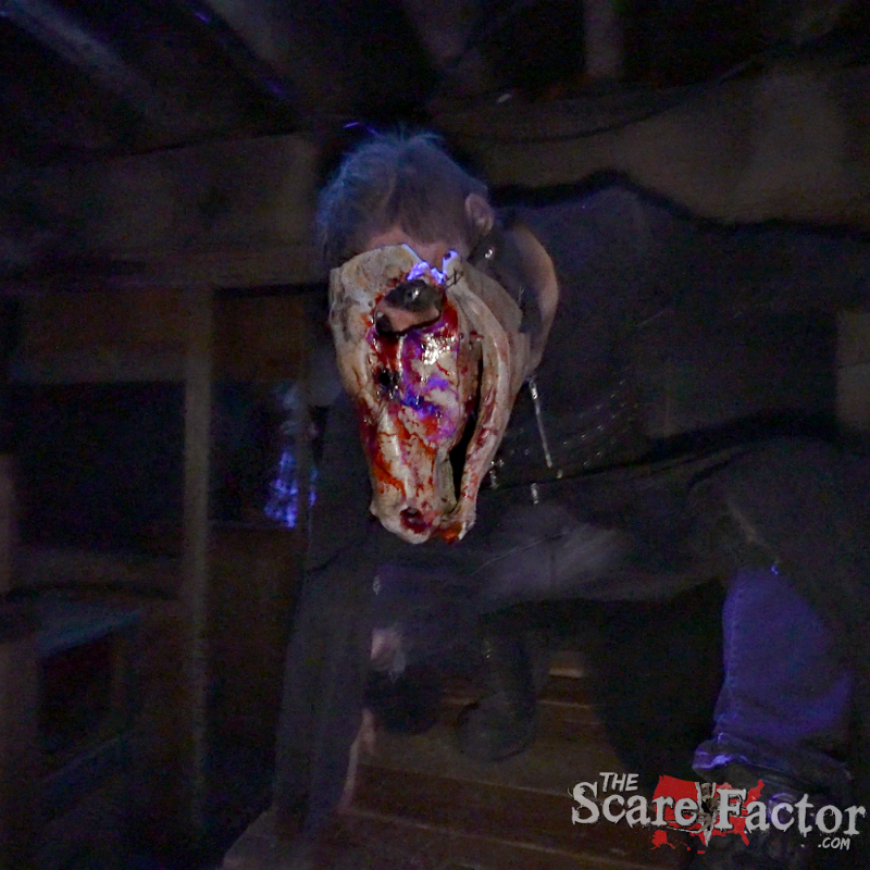 Others had enormous, scary fangs, massive claws, and antlers atop their heads. The clowns, though terrifying in every way, were painted brightly and wore clothing to match. There were a couple of times I could spot very small places of skin of the actor under their masks, but overall, the costuming at the morgue was effective and realistic, adding that extra element of scary to each being in horrific fashion!