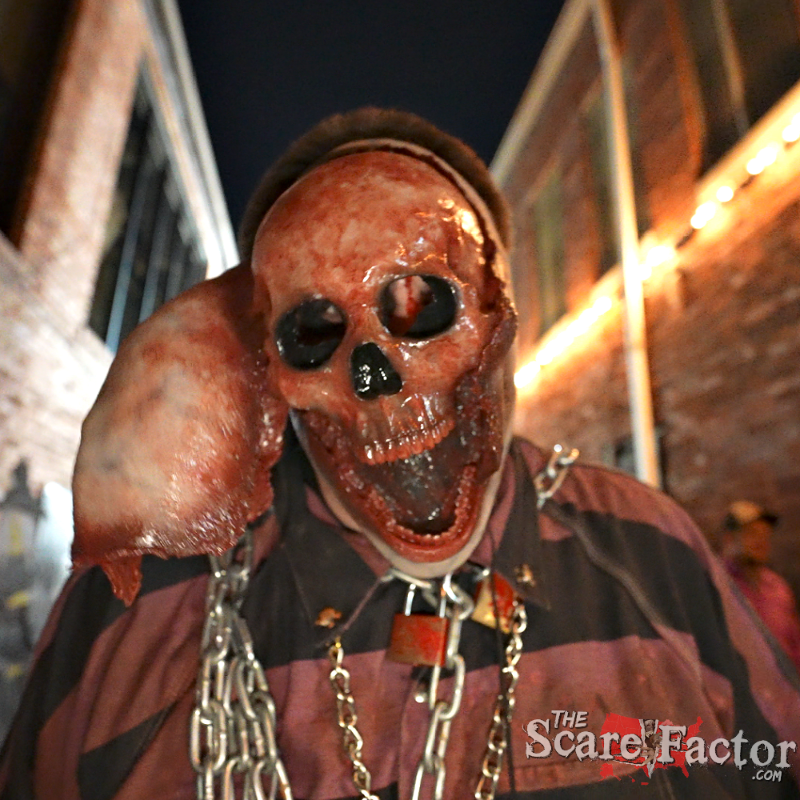On a crisp, fall night, vintage string lights swayed above the queue, their glow casting eerie shadows on the weathered brick. The atmosphere already felt heavy with dread, but when a hulking brute stepped into view, his face dangling by a thread of flesh, our nerves snapped to attention. What had we just gotten ourselves into?