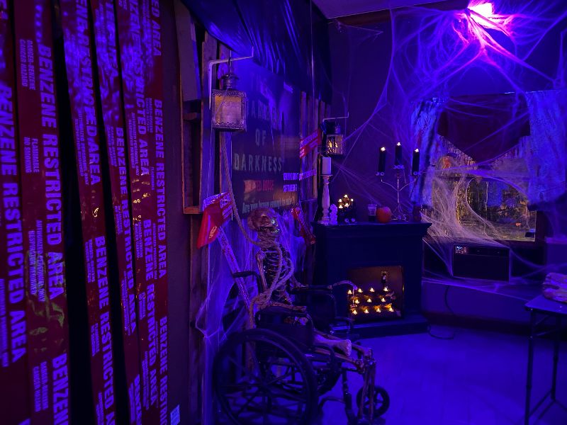 This haunt did not have any animatronics. The owner prefers to use live actors, and we would agree on this! Sometimes, animatronics don’t work the way you want them to, or they are jerky and look & sound fake. The Chamber of Darkness only used props. Most of the props we encountered were realistic and seemed to fit the scene they were in.