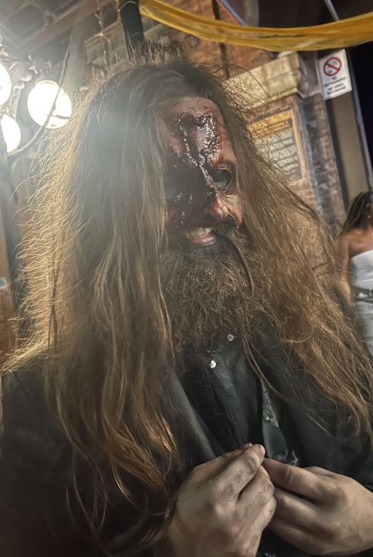 Even from the start of the attraction, before you enter, the queue actors know the perfect time to strike and interact with the line. We love Rat Lady, and her adorable rats: Biscuit, Gravy, and Smores. She is a key part of this attraction, and we look forward every year to getting to see her. We also enjoyed the fire dancer and the other rotten gentleman who was with Rat Lady. He was funny and we enjoyed bantering with him.
