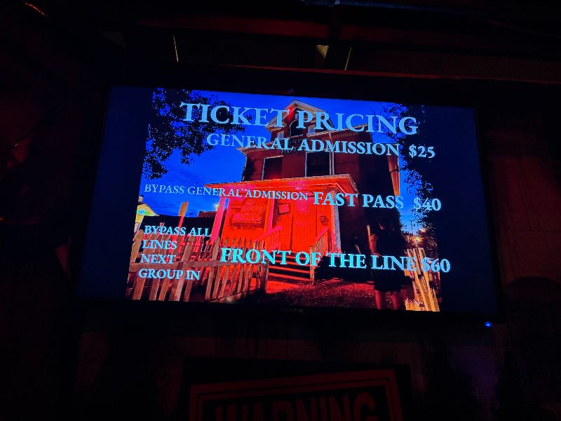 Plenty of security was on hand to keep everyone safe, and there were many helpful staff members around to assist customers. I would recommend watching your step on your way to the ticket booth, as it’s darker on that side, and there were some uneven spots. Navigating the property wasn’t difficult, with the entrance to the General Admission queue easy to find and the Fast Pass line clearly labeled. A common question I’ve heard from arriving groups is where to purchase tickets, as that is not immediately obvious – adding a sign or two at the front would help. Just about everything prospective customers would want to know about the attraction can be found on the haunt’s website.
