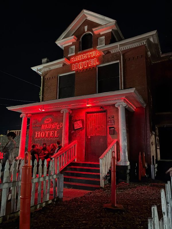 Reluctantly, I ascend and wait to be checked in. A small, busted opening in the door provides the only glimpse as to what I may face once I’m inside… and I could’ve sworn I just saw a pair of eyes, gleaming with evil delight, peering at me from the darkness. For my twelfth year in a row, it’s time for the annual stay at the scariest hotel in Louisville: the infamous Haunted Hotel.