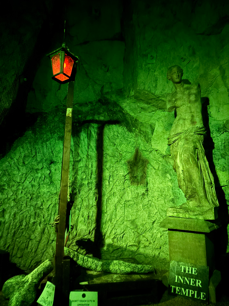 We were very pleased with the level of intimate interactions here, especially compared to previous years. One of the professors playfully asked us to play Duck Duck Goose with her, and in the process split us up before sending us into the innermost portion of the caves. The Raven, with long, clanking claws, cornered one of us to a wall, moving their talons along the limestone subtly, whilst narrating a segment of Poe’s poem of the same name – absolutely unnerving!