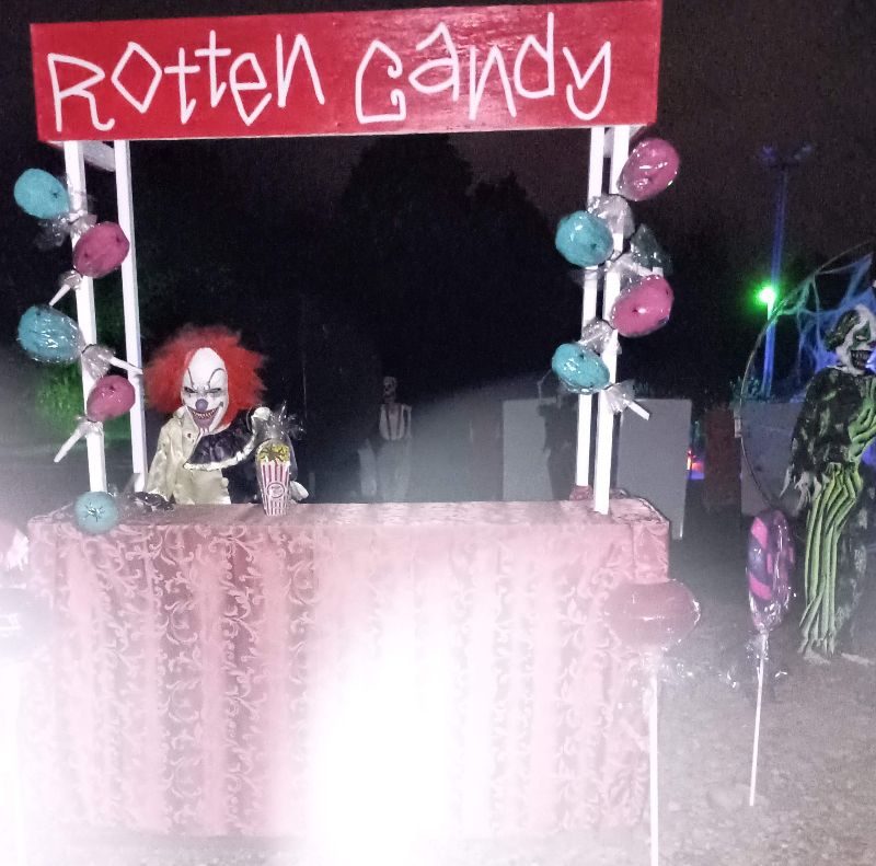 Audio-wise, we heard some recorded (we think) whispers and screams, a bit of music, and noises from animatronics, but most of the sounds were actor-made or provided. The aroma of popcorn in the carnival area made us hungry for a snack!