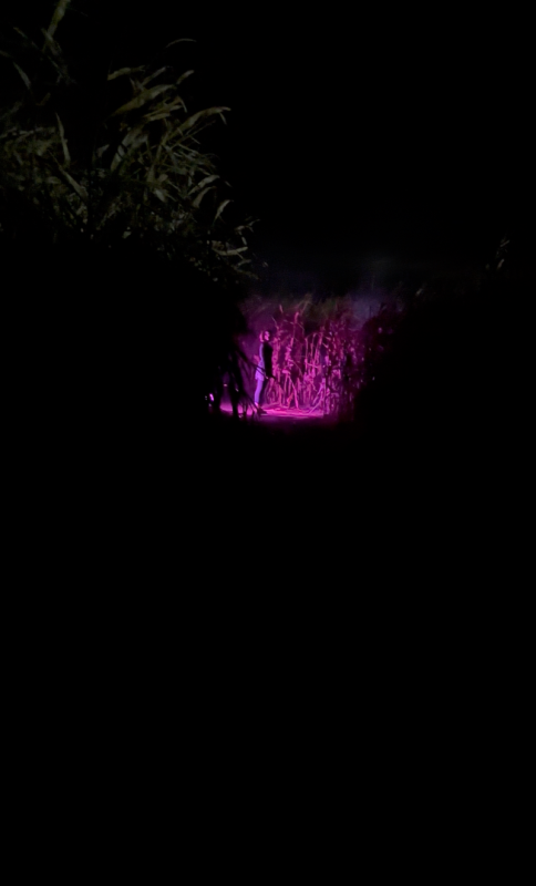 This maze obviously relies very heavily on its natural surroundings, with its acres upon acres of corn stalks encompassing you for your entire journey. While special effects were quite minimal, there were very strategic moments of light, fog and music, sometimes lighting your way and other times indicating that you were entering a creature’s territory. There is also a watchtower near the center of the maze, its rotating yellow lights and siren providing an eerie and post-apocalyptic feeling. We also heard pre-recorded chainsaw sounds and screams. All these sound and light effects were quite useful in us navigating back out of the maze, always knowing that nearing a specific effect meant we were closer to safety. However ultimately, there was quite a lot of the maze that didn’t have any effect, often leaving us encircled by the endless dark and corn.
