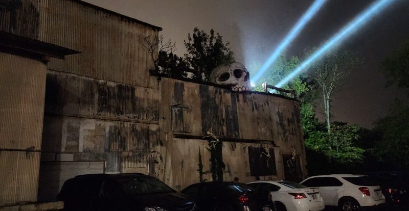As we drove through the night, at about 5 miles out from our destination our group noticed something – two bright spotlights were sweeping through the air originating from the same point. “Could that be where we’re going?” we wondered, our excitement building. We were delighted to see that those two lights did indeed lead us straight to the haunt. Even without the bright lights, GPS was able to lead us straight to their large gravel lot for parking. We later discovered that if the gravel lot fills up, other lots are available, and a shuttle service is provided.