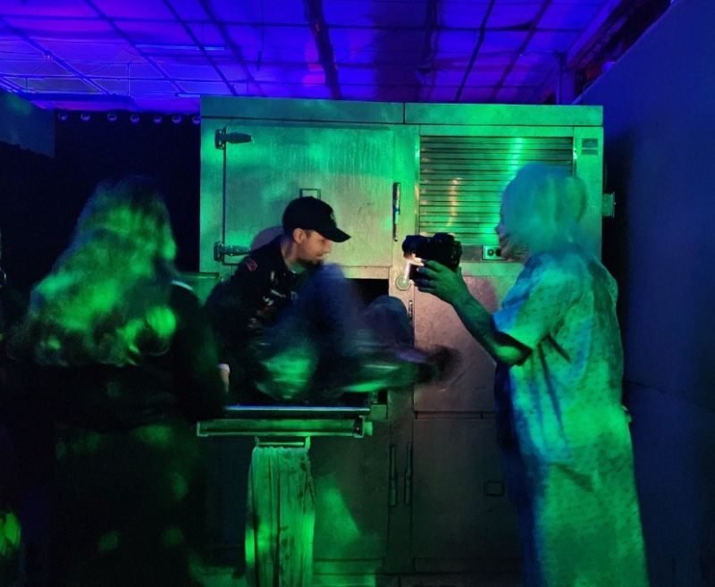 We had no trouble moving around inside the massive facility. There was room for an otherwordly creature on stilts to swing, plenty of space for actors to chase us all over the midway (tip: if they challenge you to a foot race, decline! They are FAST), and space for an actual morgue freezer! One word of caution to those of you brave enough to be loaded into the morgue freezer – keep your head flat on the gurney! One of us wanted to watch being loaded in, only to hit their head pretty hard while being slid into the freezer.