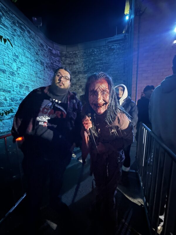 The second and third attractions are set outdoors, with the actors wearing appropriate layered clothing to fit in with the dark scenes. While everyone wore layers and had tattered costumes, one of our team members couldn’t get over the fact that one of them had a very distinguished pointy mustache. Still not sure if it was an addition to their face or if it was real. Another actor had a mask on that looked like they had a second face on.