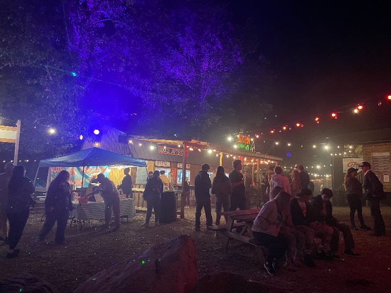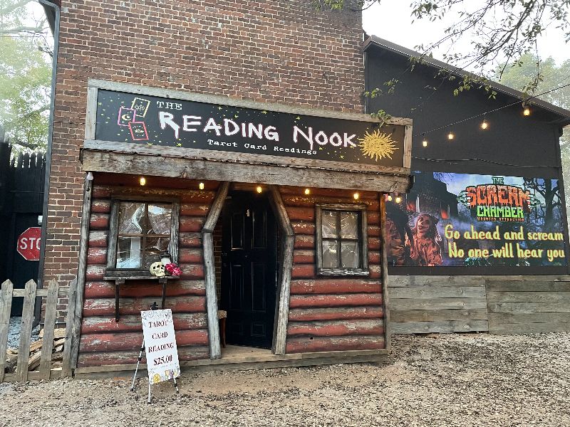 The pre-haunt atmosphere is so much fun! There is music playing, a laser light show, scare actors roaming around, spooky decorations, Midway games, and concessions! The games are an additional cost, but you could either ride the hearse in a coffin, play a mini escape room, go through the fog maze, do a tarot card reading, or do axe-throwing. We had the opportunity to do everything, and it was a blast! We even got ourselves shaved ice, and it was delicious.