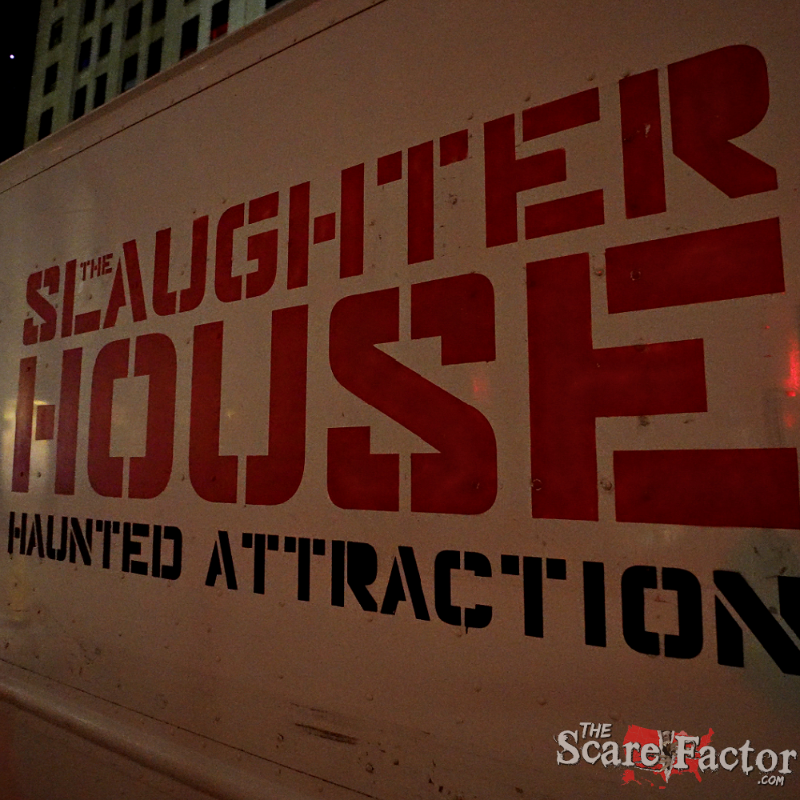 We parked along the curb in the heart of downtown Des Moines, city lights bouncing off the windshield. Before we even got out, a filthy man strolled by with a grimy mop slung over his shoulder like he was fresh off cleaning up something we didn’t want to know about. As a few more creepy-lookin’ fellers wandered past (no offense), we figured this had to be the right place – The Slaughterhouse Haunted Attraction.