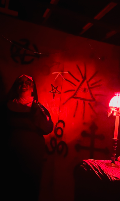 Standout characters of the night included a bearlike creature in “Toys R Undead”, the warden at the beginning of “Death Row” who had an entire monologue before turning to us to show his disgustingly bloody and oozing face, and a demonlike nun sitting on a bed in the “Convent”, her eerie eyes and long fingernails shining through the fog and lights.