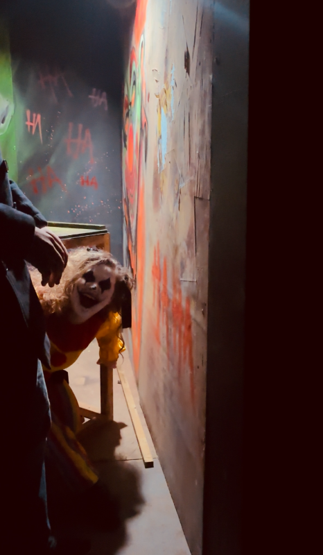 We also have to mention the cast of the entry and exit mazes into the park, with some really animated and dynamic, not to mention slightly unhinged, clowns. The clowns in the entry maze were terrifying, throwing themselves at us from behind bars and cornering us after only just escaping a difficult birth canal: finally a maze with a terrifying actor at the end of one of these effects, as so many haunts this year have failed to have any cast attack us after getting through these dark birth canals. The clowns at the exit maze were intensely interactive too, shocking us by coming out of nowhere while then offering hilarious witticisms and constantly stalking us the entire way out!