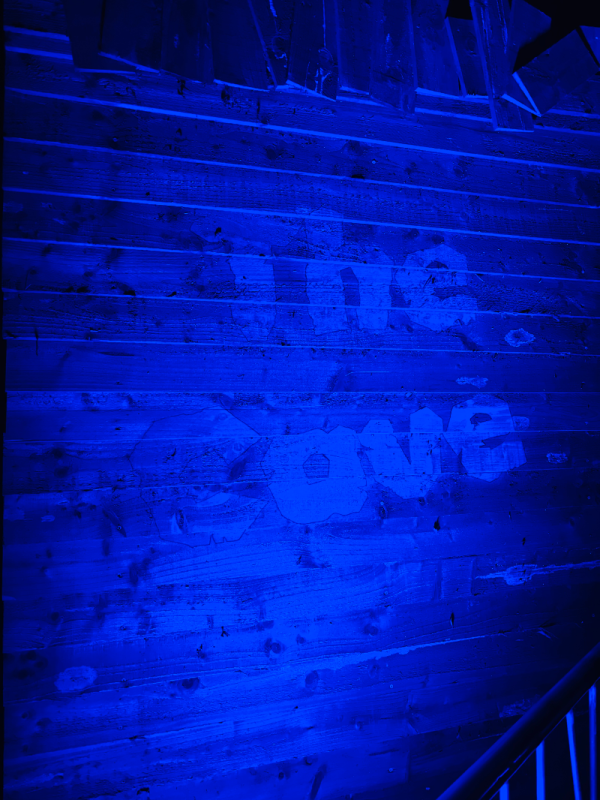 Trinity Scares makes good use of special effects, including lighting, but especially sound. Soundtracks are different throughout and create distinct locations as you experience them. The effects and scenes themselves are also particularly interactive here. “The Nightmare” did this well with some unique challenges we have to navigate, including a climbing wall, tunnel, two rickety bridges that moved beneath you (including one with the illusion of water created by shredded white and shimmering paper beneath), giant elastic webbing you need to manipulate to get through, a slide, a room that got smaller and smaller, a birth canal, and a toilet that sprayed us as we passed. Scene designs are otherwise simple, but accompanied by air cannons with cable to brush your feet and animated screens that one minute are a mirror and the next are showing you beings from beyond this world. It was a very active experience and left us with that disorientation one often feels upon waking from a bad dream. Oh, and one further thing – there’s a magnificent and completely unexpected mechanical element at the beginning that was absolutely shattering and incredibly well executed. We can’t spoil that surprise!