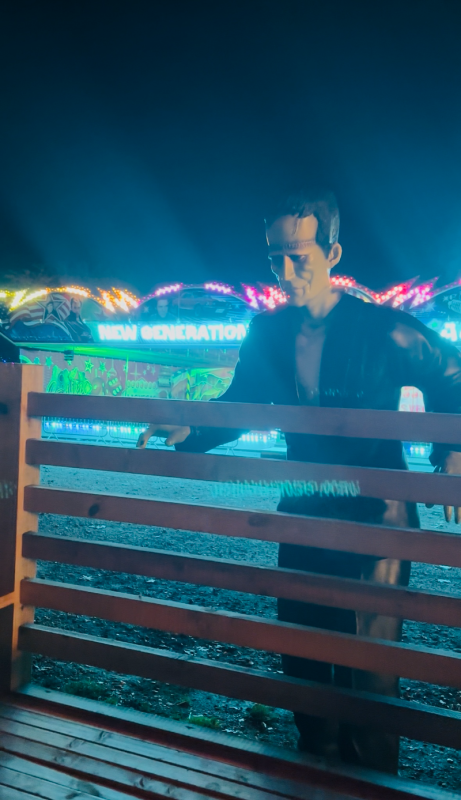 “The Haunting” began in a different season, disguised as a twisted Christmas. A talkative, mischievous elf drew the group in with lively interaction before handing over to a sinister Krampus who loomed never too far away. Then, we were onto the Big Top where two clowns commanded the stage (and us guests!). Some were pulled from the group to take solo teacup rides with the clowns in the fairground area, spinning us wildly whilst straddled by the clown who never lost eye contact; while others were forced onstage to hula hoop under bright lights and emotionless clapping. One guest was even “kidnapped” and taken into a caravan for a one-on-one fright, while the rest of the group waited, only hearing distant screams. Later, we were led into a pitch-black maze populated by warped, animal-headed figures brandishing blades in utter feral chaos. The variety of acting and interaction here, be it playful to very frightful really made this maze stand out from the three.