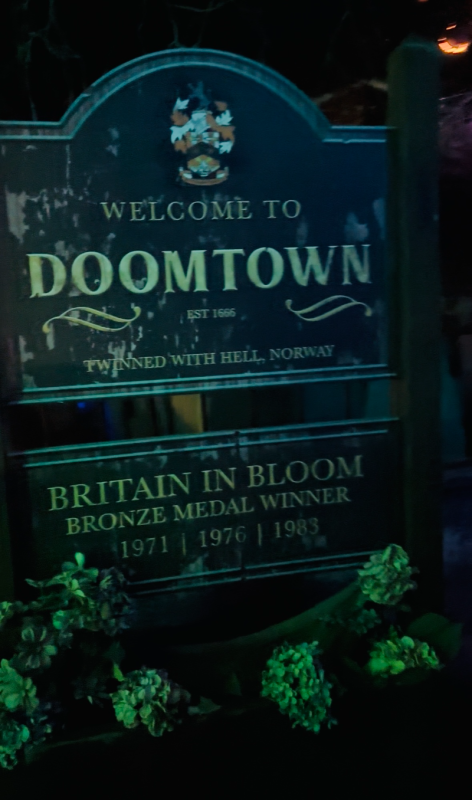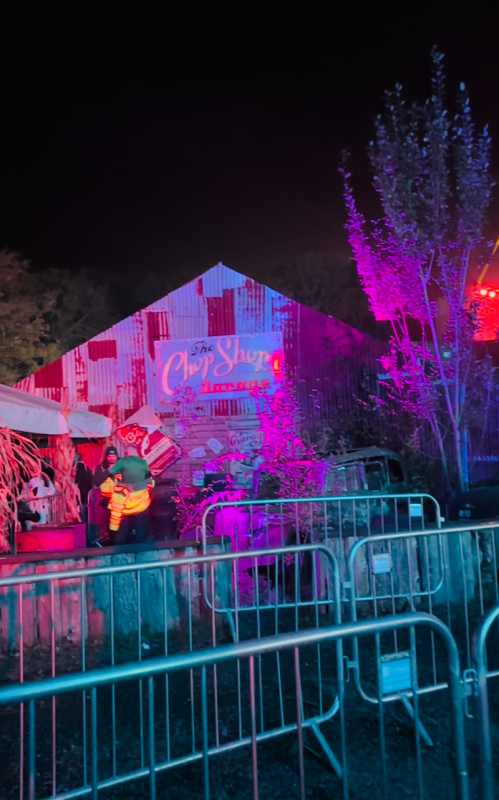 There were some real highlights this year in terms of SFX within almost every single maze. “The Carving” has fun sound designs, progressing from banjo music to oldtime Americana to more sinister sounds, a few instances of flames and animatronics, and of course a beautiful set design with their high wooden fencing, corn stalks, and creatures with bagged heads. It’s the most cinematic maze in the park, with “Doom Town” a close second, with their intricate sets which drop you inside an actual town, letting you explore each store from a Blockbuster to a Greggs. The theming of this one is insane, and has some entertaining sound design incorporated throughout too, with nostalgic 80s soundtracks playing in each of the spaces.