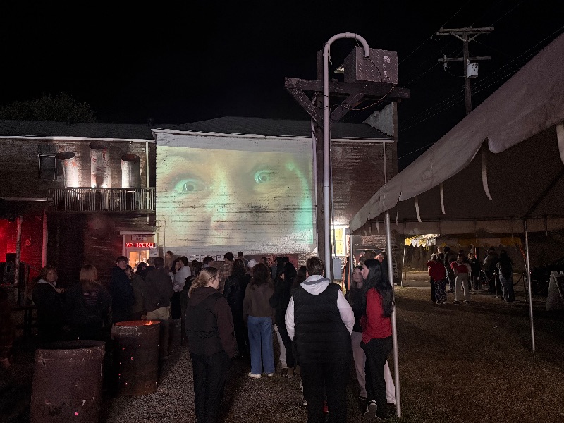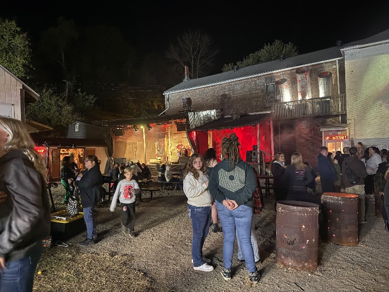 When you arrive, it doesn’t seem like you’re at a haunted attraction because you’re right in the middle of a neighborhood. However, the loud music, glowing fire barrels, and brightly lit food trucks quickly confirm that you’re in the right spot.