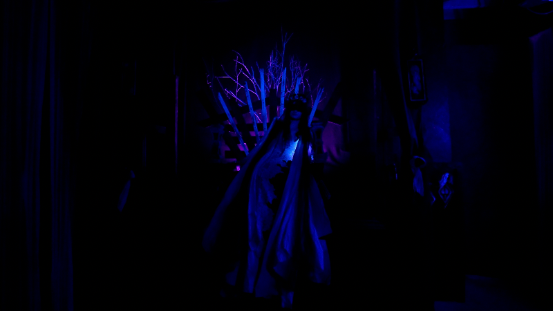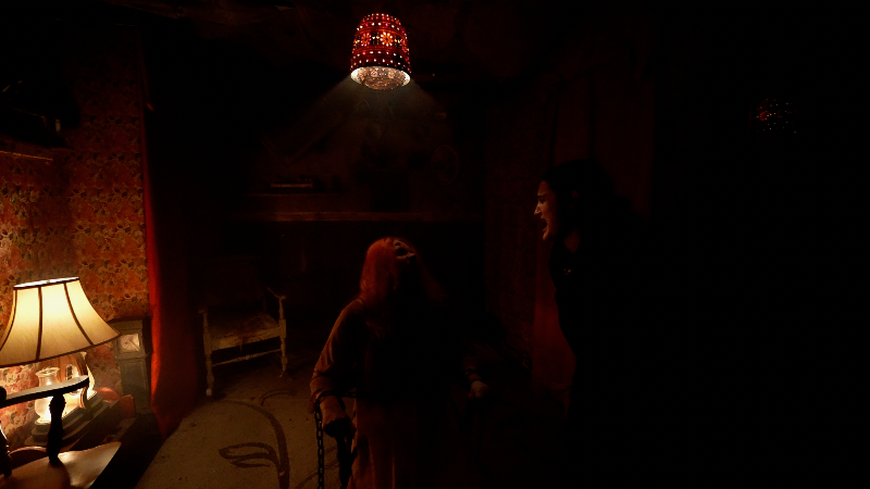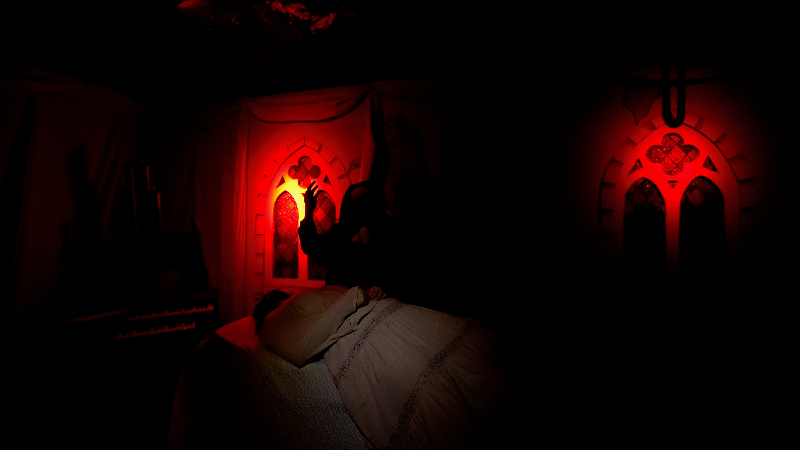 During another scene, we saw a cast member experiencing a bad dream as the lights flickered. Suddenly, a creature on four legs emerged from the closet and got right up in our faces. We weren’t sure what it was meant to be, but it gave us quite a scare.