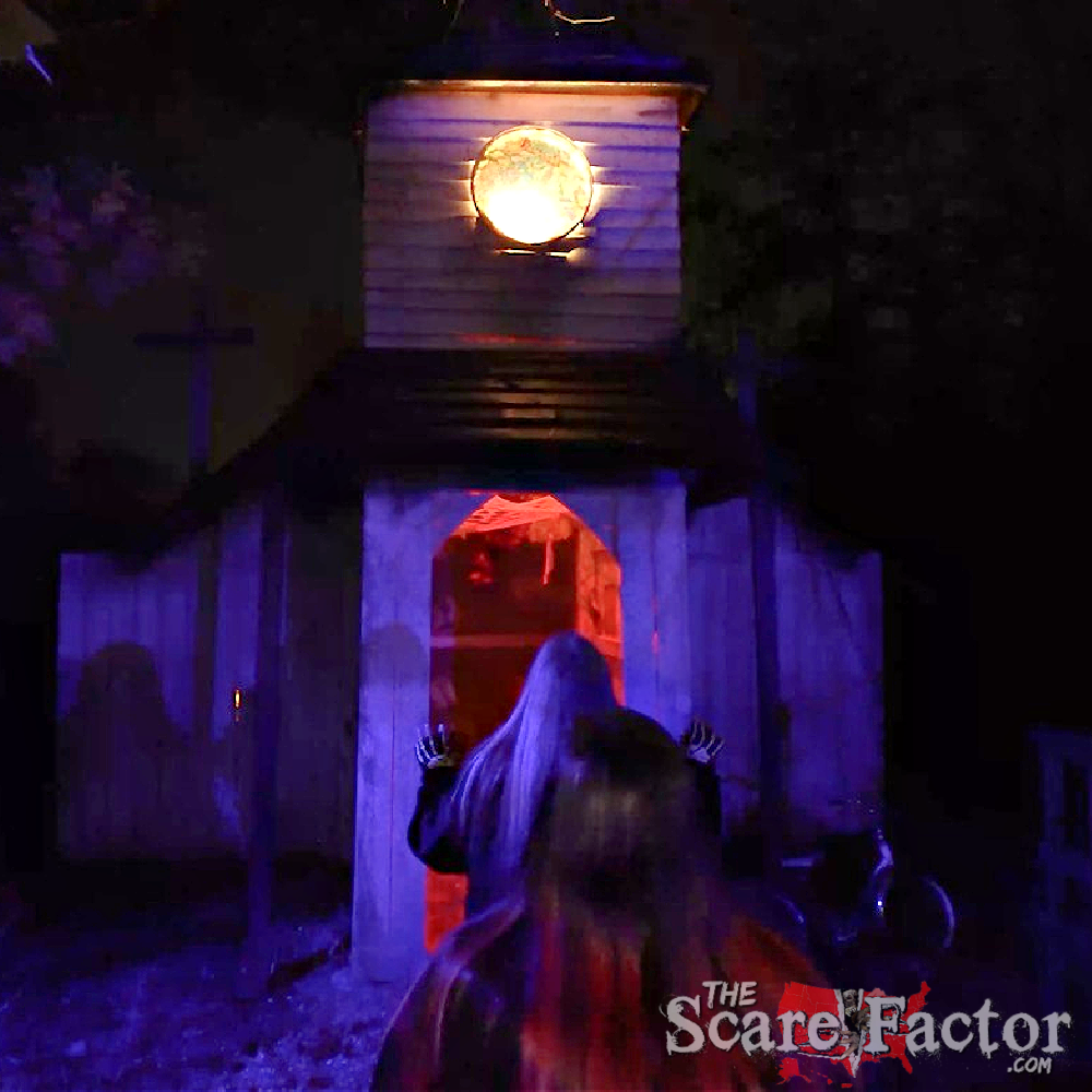 Everything at When Darkness Falls was created and constructed in-house, meaning guests will find plenty of unique details along this trail! Some areas featured simple but effective props scattered throughout the woods, while others transformed into fully built structures, including a detailed church, a makeshift laboratory with excellent details inside, and a chilling doll dorm.