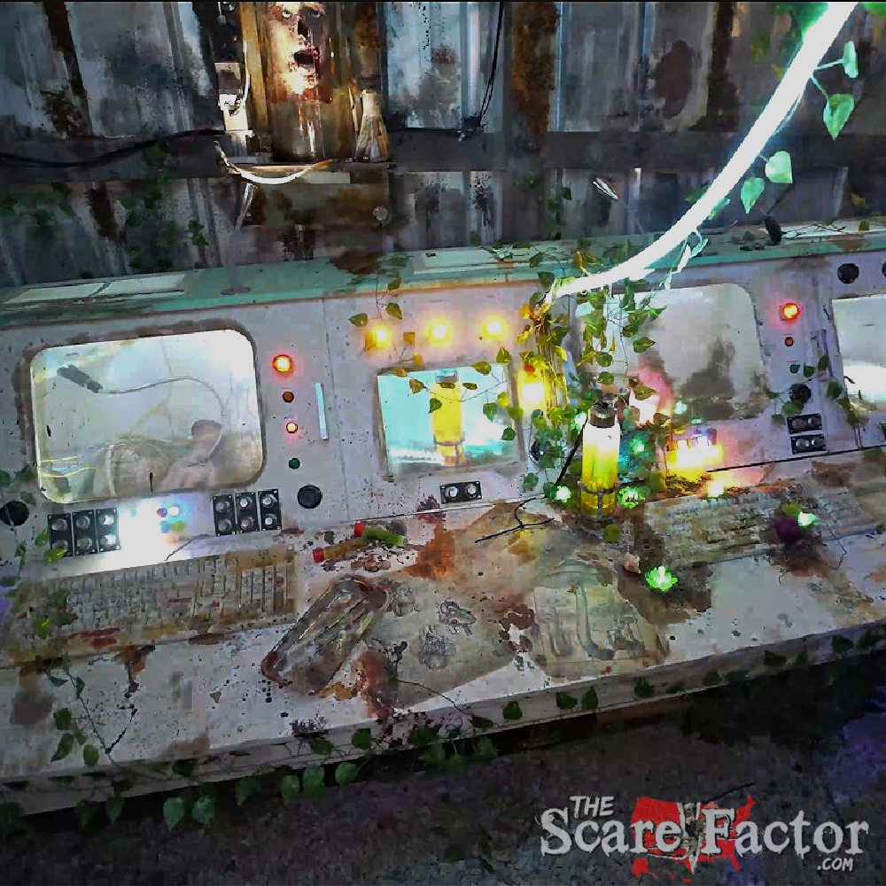 The lab scene stood out for its realistic décor and clever in-house creations; it looked like a twisted experiment that went horribly wrong! Along the trail, we encountered some disturbingly realistic and bloody bodies, dangling spiders and webs, and even a teddy bear prop with an unexpected surprise. The bathroom scene also deserves a shoutout for being one of the grossest rooms we’ve seen all season, complete with a horrific mess and a stench that’ll haunt your nose for days.