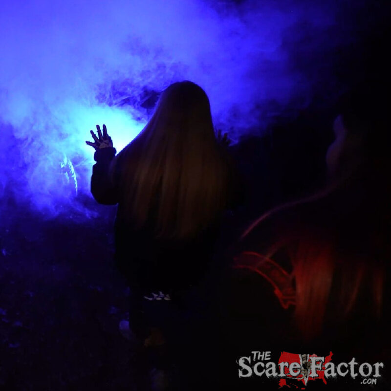 While Darkness Falls Haunted Trail does not have a specific storyline, as we made our way through the haunt, the overall themes of each area we encountered were pretty easily determined. Each one had us feeling like we’d truly stepped into another reality, and the actors did a fantastic job making it feel even more realistic. Immersion is a difficult aspect for haunts to achieve, especially for a trail such as this, but this attraction specifically kept the eerie vibes flowing from start to finish, never alleviating the strong tension we all felt.
