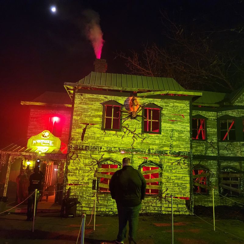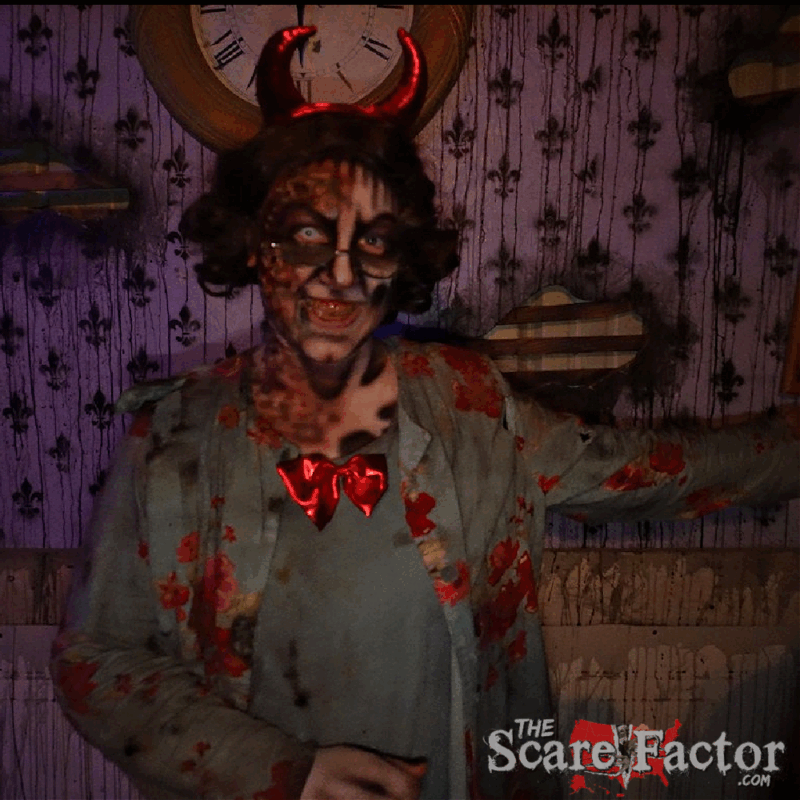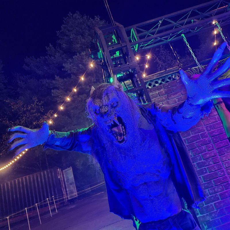 We were met at the entrance to Nightmare Haunted House by Dr. Drizz. He was all too happy to send us inside (watch out, there are some “Temu” versions running amok, which were quite amusing!). The darkness inside engulfed and surrounded our group, leaving us fearful that we would be kept longer than our intended visit time. We were met by the grave-keeper just inside the cemetery gates; she was eager to help us choose our plot. From the gates into the darkness, more fiendish characters came to life throughout, and some very unexpectedly. All of the inhabitants of the house used their own means of persuasion to try to convince us to stay, and they covered the haunt well. The man in the boiler room made a good point in the fact that it was way warmer inside the boiler than outside! He *almost had us convinced…