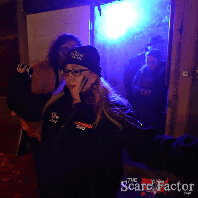 Then in The Hunted, we were given guns and told, “Best of luck!” That made us feel so much better about entering! Zombies inside came at us from all angles. Some even came through holes in the walls! All with the goal to infect all of us. The fear of not knowing when they would be lurking around us was intense. This military-style experience had us shooting zombies before they could get us! Luckily, we all made it out uninfected. Be on your best lookout, some of those zombies look fake until it’s almost too late! At the exit, we had several of them all coming at us at once!