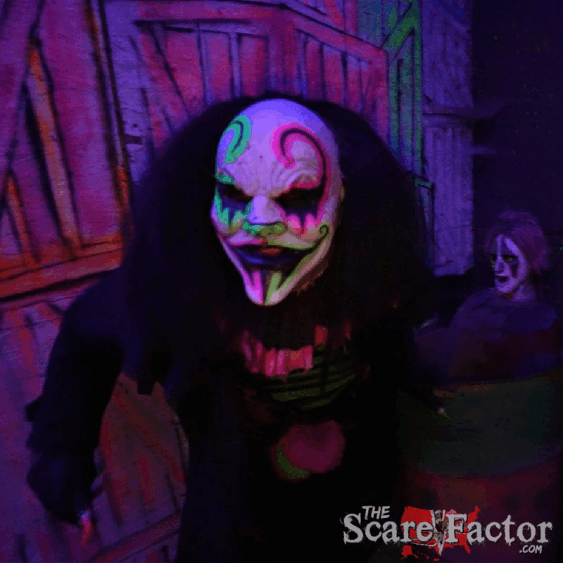 The fog on the fields, the rumbling from the bass of the music can be heard over the hills, and screams came from every direction of darkness…From the minute you enter the gates of Wicked World, the experience begins. The sliders shower visitors with sparky slides and stunts to provide a jumpy start right off the bat. These creepy clowns and other fiendish characters continuously make you aware of their presence in the midway activities, stalking victims, and lurking in and out of the darkness, and occasionally may mark someone for keeps. (Two of our group members were greeted and marked by Slyce.) They really make the pre-haunt atmosphere come to life!