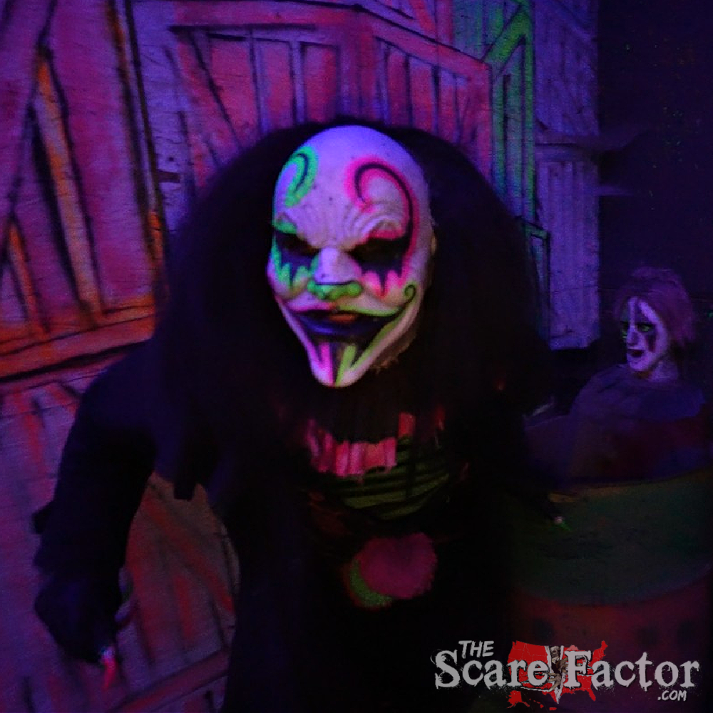 Upon entering Wicked World, we were immediately showered with sparks from the various sliders roaming the midway. Creepish happy clowns and freaky-looking characters roamed the entire grounds, both in and outside the three main haunts. Some characters were making a substantial impact on the crowd and queue area, such as Slyce, Noodles, Blueberry, Lilith, and the shadowy fella. A couple of our group members got “Slyced” as soon as they were spotted and had to wear dark muck on their faces throughout the night, lol. All of these creepers, eerily stalked in and out of waiting lines and provided shrieks and scares to EVERYONE, including WW staff members!