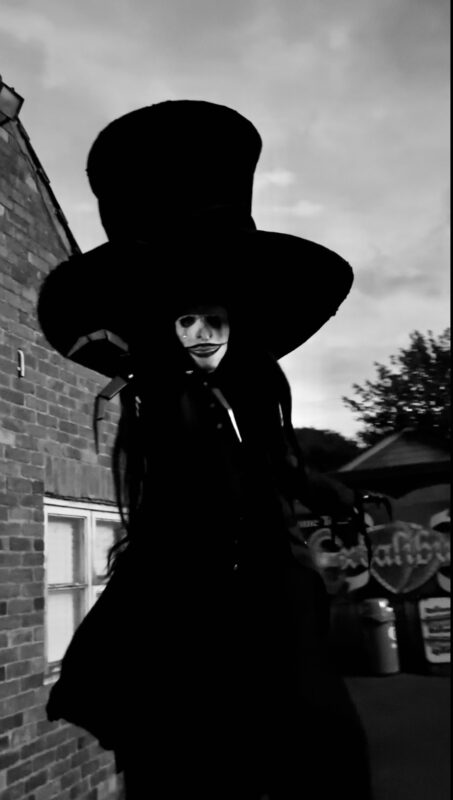 This same technique was on display at “The Village”, where baghead scarecrows bristled with hay that trailed from them like hair. “Blutlust” upped the game more, combining elegance with horror, and transformative masks that exposed the true nature of the vampires beneath. These were beings dressed in black to kill!