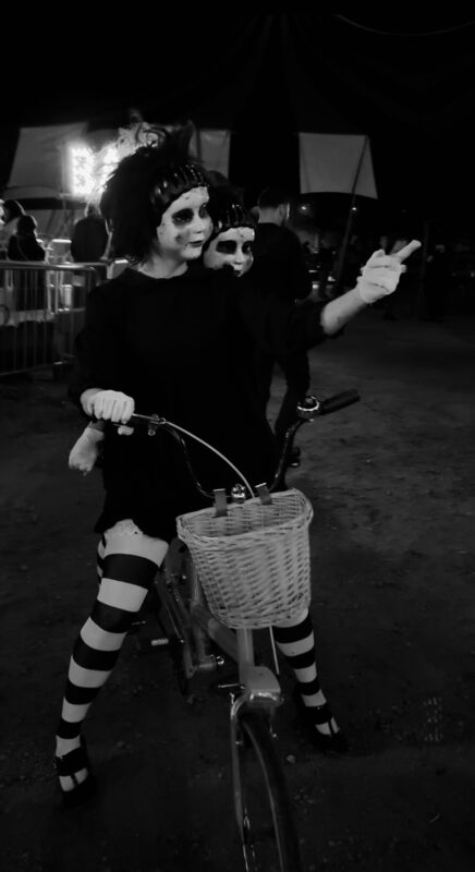 We found that the residents of Xtreme Scream Park had a great deal of variability in their performances. Some excellent acting was on display with the roaming actors, including a creepy duo of masked monochrome girls on a bicycle, and a giant stilt pumpkin man puppeteering another actor into action, spooking the walkways between haunts.