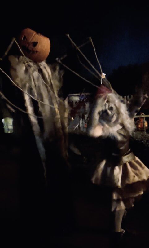 Sometimes, actors embodied famous characters. Hannibal, being imprisoned in “Ash Hell Penitentiary”, was very keen to smell one of our reviewers and perhaps collect a body part to add to his collection, which already displayed his past “conquests”. At other moments, actors did a terrific job of remaining entirely still, only to spring into horrific motion on us passing. The scarecrows looking to harvest us in “The Village” were particularly effective in this regard.